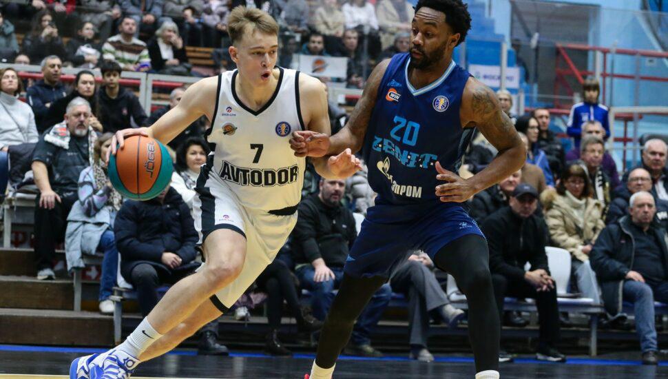 Since then, Avtodor have played five games: they suffered very low-scoring away losses to CSKA (49:94) and BETCITY PARMA (44:78), then played at home against Zenit and were also trailing badly, but suddenly woke up in the 4th quarter and turned 40:70 into 62:75. Pavel Zemsky, a forward on loan from St. Petersburg, performed brilliantly against his native team (17 points; he’s with the ball in the next photo), point guard Vitalijus Pranauskis added 9 assists to his 15 points, and Daniil Kasko, a forward on loan from Lokomotiv, grabbed 12 rebounds.
