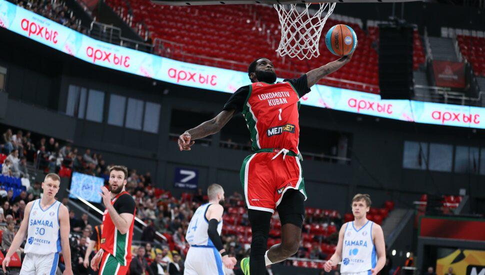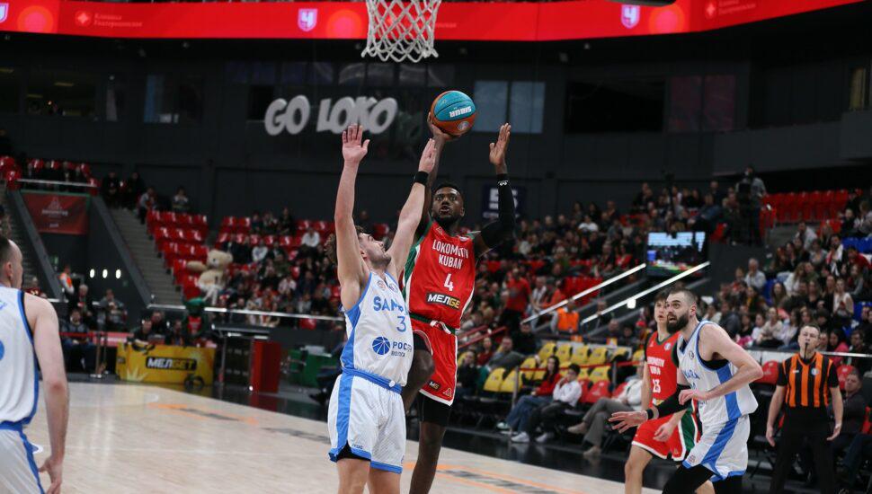 На старте 2-й четверти у самарцев начал набирать очки самый результативный игрок чемпионата, Никита Михайловский – он забивал в ответ на попадания Квитковских, Макара Коновалова, (он завершил две атаки подряд) да и в ответ на промахи хозяев тоже забивал, так что «Самара» в какой-то момент повела 38:34. На площадку вернулись Мур, Джонсон и Джеремайя Мартин, что позволило краснодарской команде за пару минут вернуть лидерство, но Кузнецов попал с периметра (к этому моменту у гостей было 58% трёхочковых, 7 из 12) – и вот снова «–4».