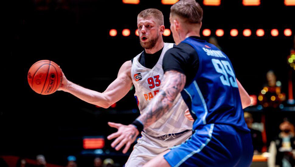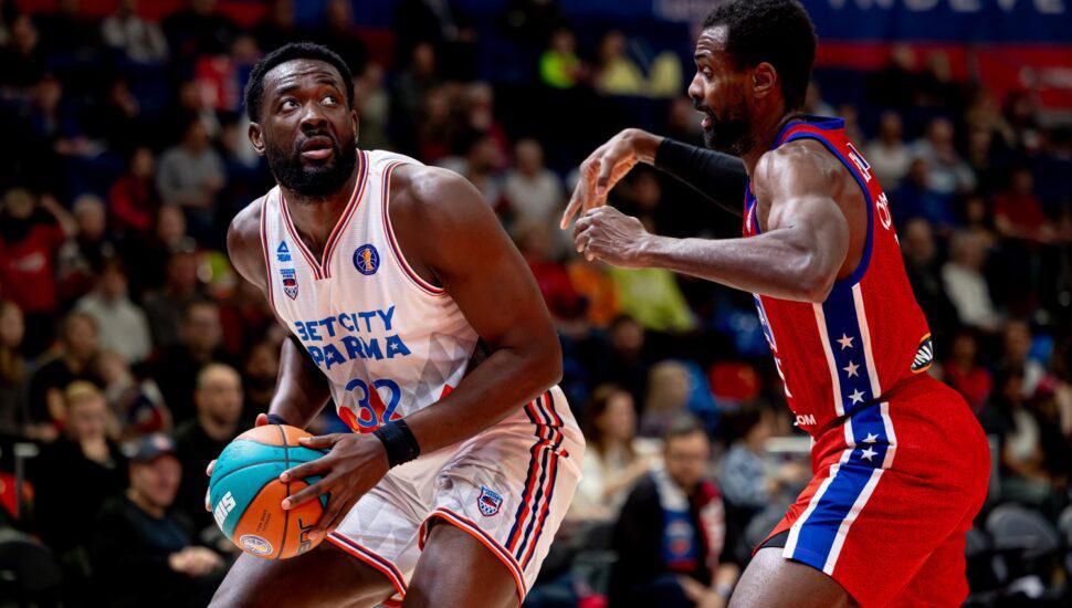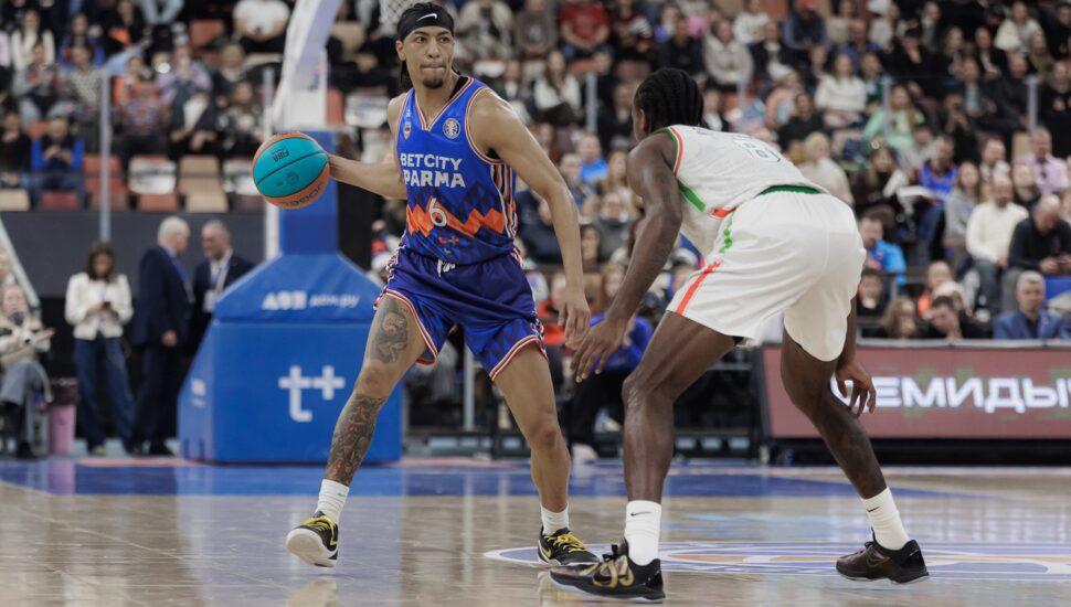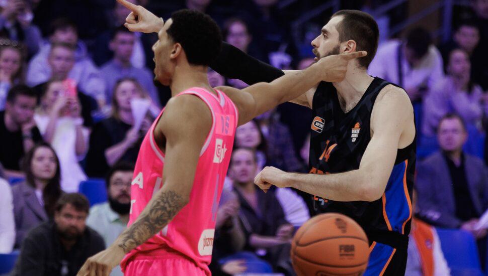 Чуть позже, а именно 31 марта, «ПАРМЕ» предстоял важный матч внутрисезонного Winline Basket Cup (в этом турнире они выступали без слова «БЕТСИТИ» в названии) – против белградской «Меги». Уральцам нужно было не проиграть с разницей в 17 очков, но они эту задачу перевыполнили – победа 92:70. Эта игра стала первой, где по-настоящему ярко проявил себя Евгений Минченко, дебютировавший за клуб неделей ранее: против сербов 215-сантиметровый центровой набрал 12 очков. В Единой Лиге ВТБ Минченко пока что сыграл за пермяков 5 матчей со статистикой 2,4+1,2 за 13 минут. Интересно, что за новую команду Евгений (на следующем фото – справа) пока что ни разу не бросал трёхочковые (ни в чемпионате, ни во внутрисезонном кубке), которыми ярко выделялся в своей предыдущей команде, «Самаре» (37,8%).